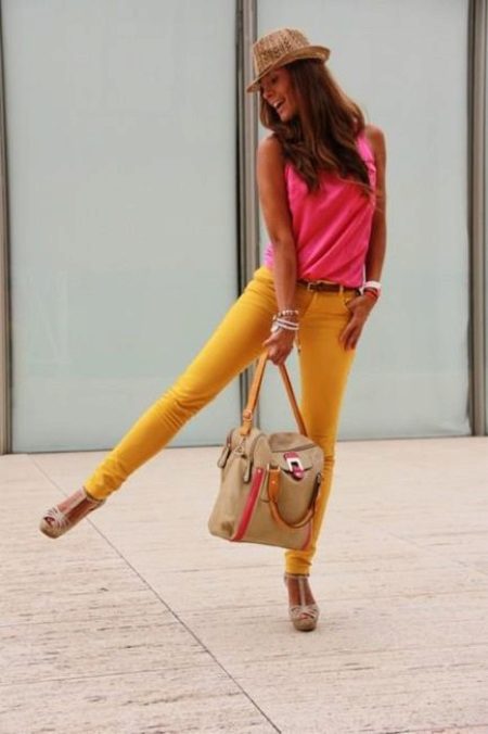 Today, colored pants in trend. Girls who have a lot of blouses and T-shirts will like them, as the variety of pants colors allows you to choose the best in different colors.