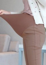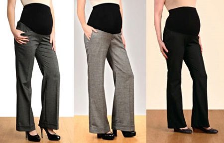 Pants for pregnant women differ from the usual only in one detail - the presence of a wide, soft belt, made of elastic knitwear. The belt can be of different widths - on some models it barely reaches the navel, while on others it reaches almost to the chest.