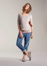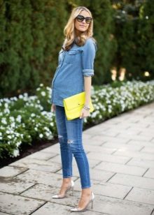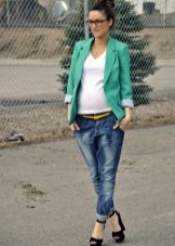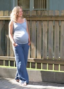 Jeans - a favorite thing so many girls, so this type of pants is most popular with pregnant women. Their absolute advantage is that jeans can be combined with any of the usual clothes, so one pair is enough for the entire period.