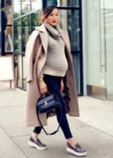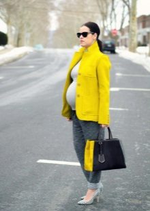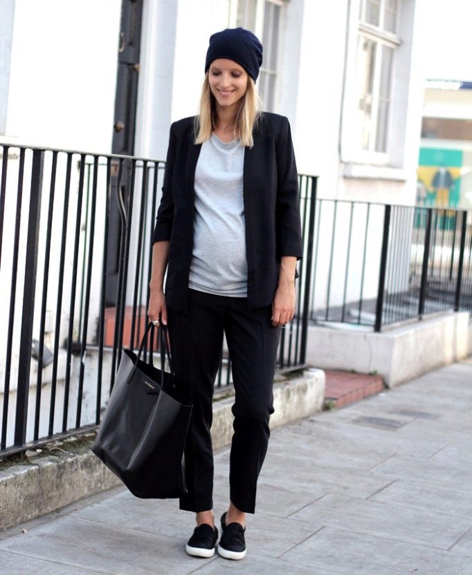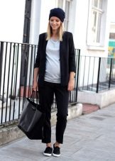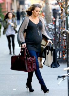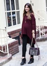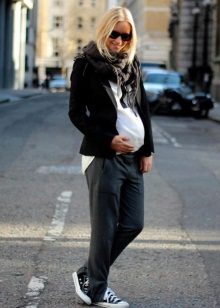 Dark pants are a more practical option, suitable for everyday activities, which the future mother has quite a lot. Dark colors look restrained and elegant, but still it is worth to dilute the image with bright or light things.