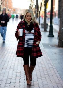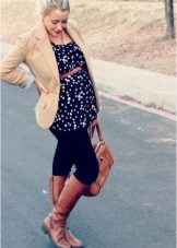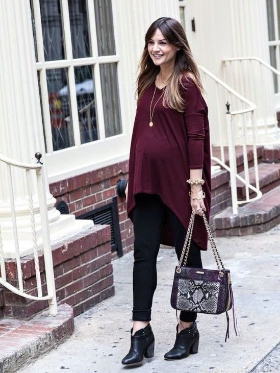 This type of pants is very comfortable during pregnancy, as they are soft and do not cause discomfort. Leggings go well with long T-shirts, blouses, sweaters and tunics.