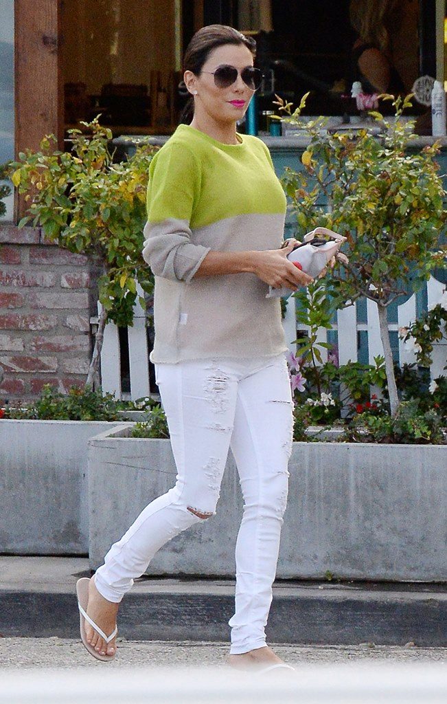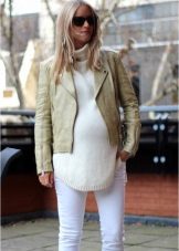 White pants for pregnant women are a good option for summer. White color will emphasize a gentle and touching image of a girl who is waiting for a baby. White pants will go well with color tops and sweaters.
