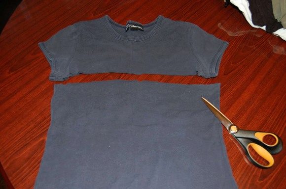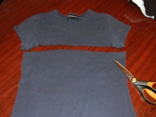 - Cut out a belt of the right height from a T-shirt.