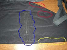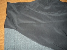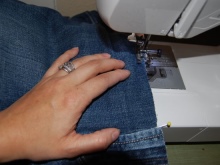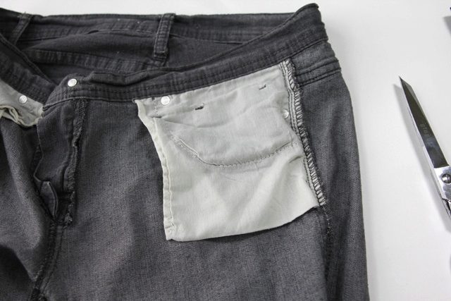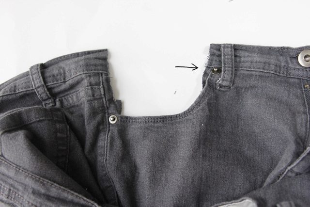 - Try on jeans and determine where the elastic belt should start. Draw a cut line.