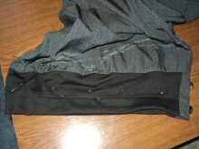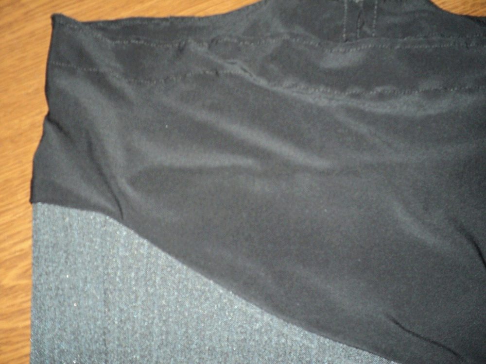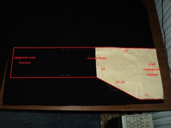 To do this, you need to open the side seams, grabbing the belt and a few centimeters below it, then sew the triangular details from elastic knit into the cuts.