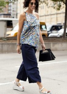 With what clothes to wear pants for pregnant women only the expectant mother can decide. We only advise you not to forget that the outfit for a girl in position should not only be comfortable, but also fashionable and beautiful. So pay attention to the romantic blouses, loose shirts, bright tunics.