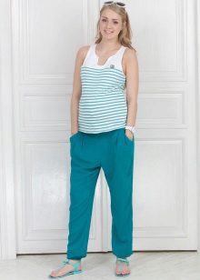 Summer pants for pregnant women can be of different styles, for example, harem pants, bananas, Capri, etc.