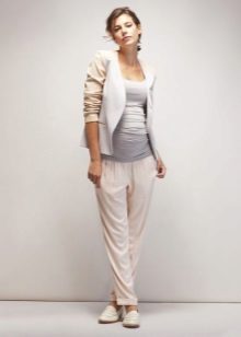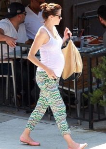 Linen pants are perfect for summer. Natural linen has the ability to cool the body, so in hot weather, these pants will be a real salvation for the future mother. But be prepared for the fact that flax is very wrinkled, so linen clothing must be carefully otglazhivat each time before putting on.