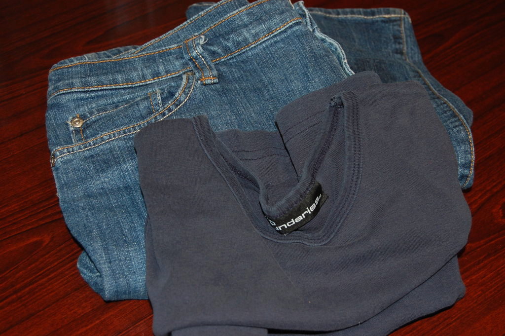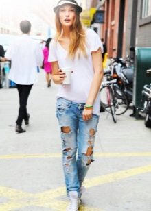 - Find the right jeans in your wardrobe - they should not be tight and hold down movement. You will also need an old knit T-shirt. It should be either flesh-colored or in tone jeans.