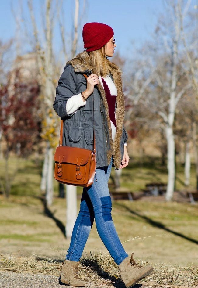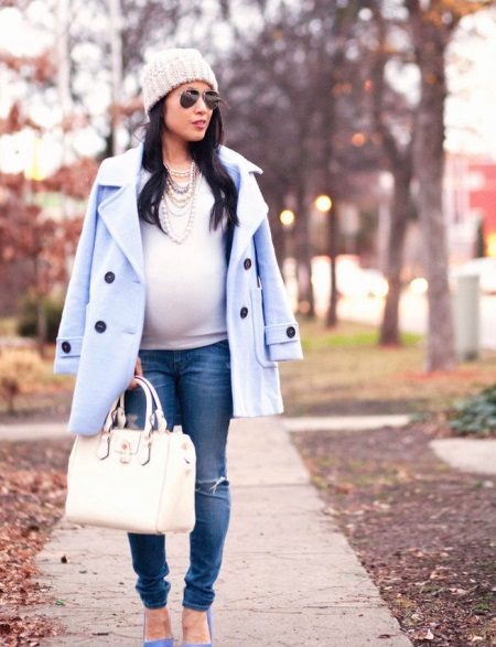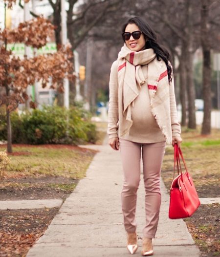 Woolen trousers are indispensable clothes for girls who expect a baby to appear in the winter months.