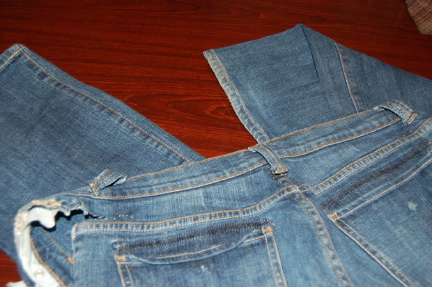 - Split the zipper and cut the top of the jeans on it by marking. Sew a slit formed in place of the fly.