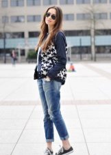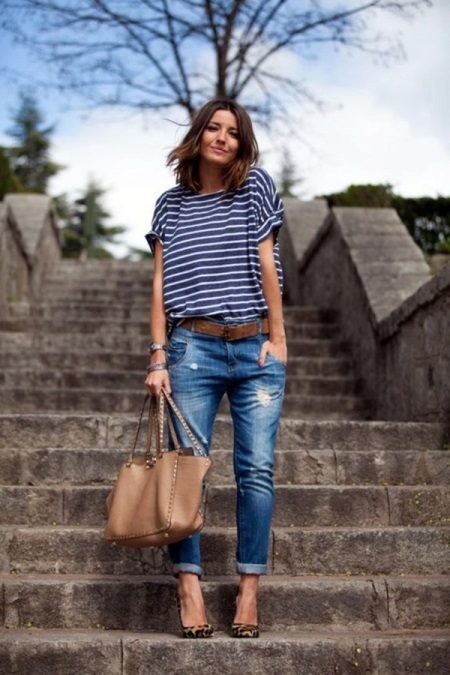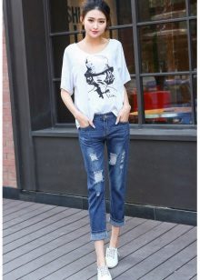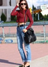 The model, not losing its relevance for the second season already, is a free cut, the length of which is, in most cases, 7/8, shortened. For this reason, stylists advise women of low stature to wear them with a heel, and high ones can afford to wear “guy's jeans” with sneakers or ballet shoes. This style is not very suitable for the full, as well as for those whose legs are curved below the knee.
