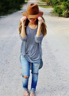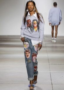 Jeans in this style have long conquered the hearts of young fashionistas around the world. Distinctive features - ragged holes in the area of the knees, deliberately battered, spattered with paint or patched with fabric.Now you can find a lot of variations - from ordinary black jeans with two small holes in the area of the knees to torn jeans, in which the holes can even be behind.