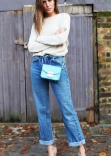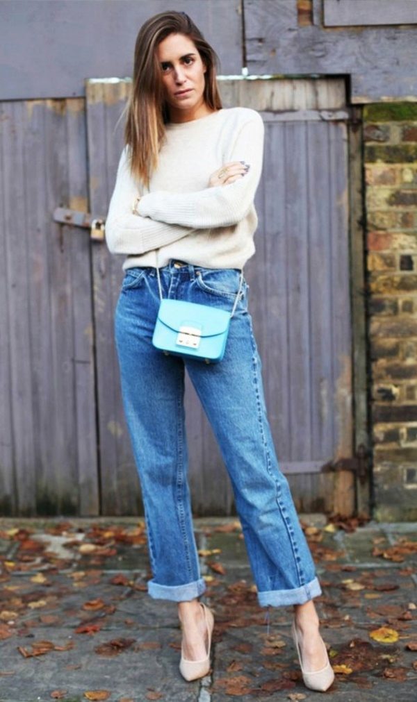 This is a kind of flared jeans. When you see them on a woman, you might think that they are larger than she needs, but do not rush into such statements. In fact, this is a great option for those whose legs are too thin, because such jeans will help to hide it, while you will look incredibly stylish.