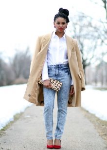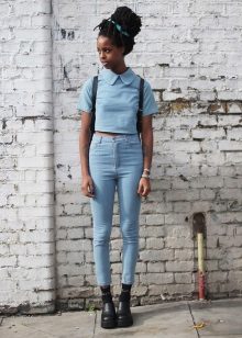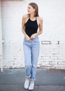 Most jeans, which are now available, have exactly this style. This is due to the high demand for this model, which is great for women with wide hips, as the high waist of the trousers helps to visually narrow them and make the figure more proportionate.