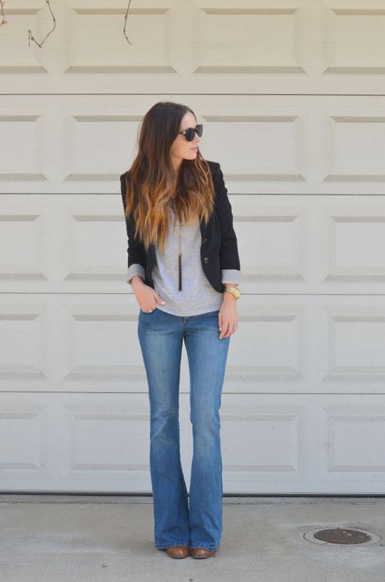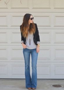 This style has become popular again this season. This model is best suited for long-legged women and those whose figure belongs to the type of "pear", helping to hide the massive hips, as well as those whose legs are not perfectly smooth, but have certain curvatures. The best pair for flared jeans is high heels.