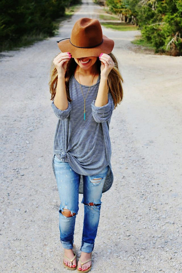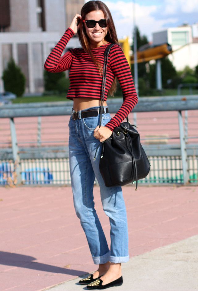 So, jeans are a universal and basic thing in a women's wardrobe. Depending on the situation, everything will do - from t-shirts and open tops to sweatshirts and from strict shirts to cute knitted sweaters. With shoes the same thing - start from sneakers and finish on sandals and ballet shoes. Generate ideas and be inspired by the spectacular images that stylists offer you.