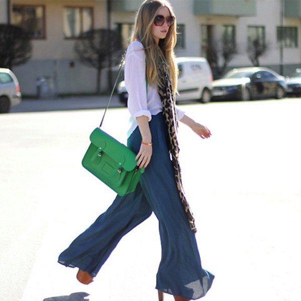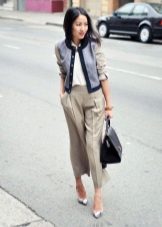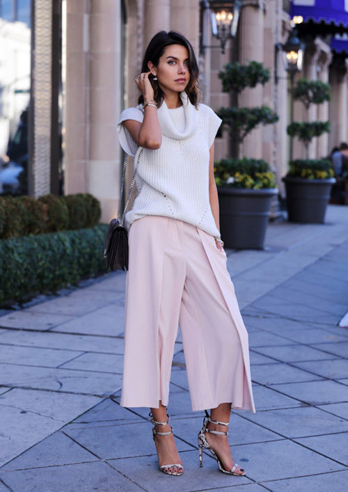 Today they are very popular, so many girls try to include them in their wardrobe.It is better to wear wide culottes with a fitted top and high heel, so as not to look too squat.