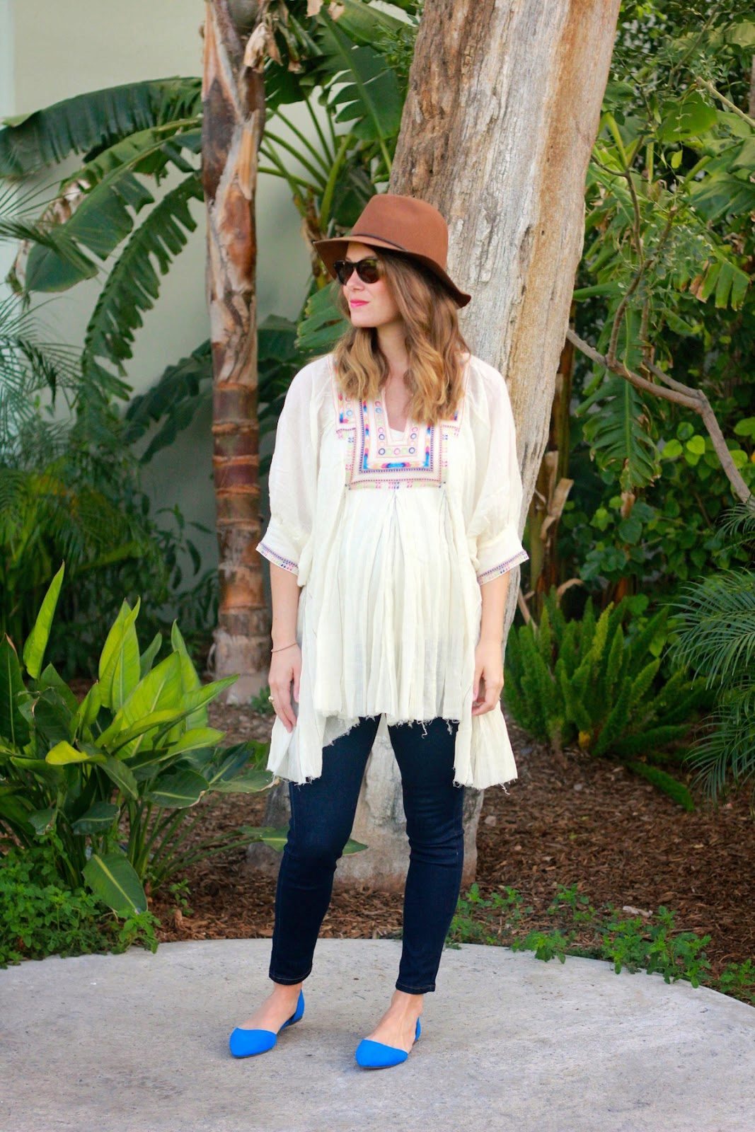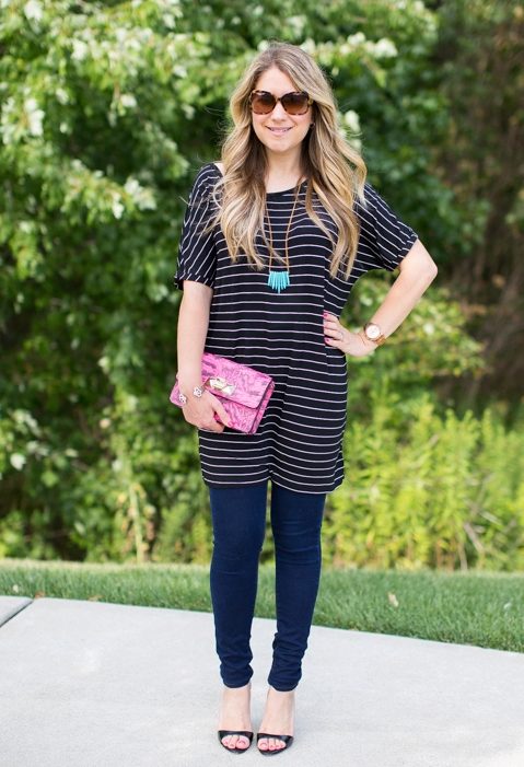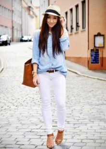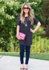 Girls with wide hips should combine skinny with a long tunic or blouse, which ends in the middle of the thigh.
