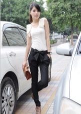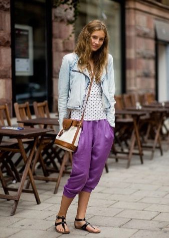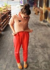 They are sewn from lightweight air fabrics such as silk or chiffon. Also, there are models in sports style, made of knitwear. Usually they are worn by girls who wear hip-hop.