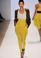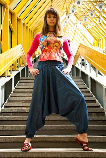 This is a wide trousers with low located elephant, and cuffs, tight-fitting ankle. There are also models with abundant drapery between the legs, which can reach 5 meters. This model came to us from the wardrobe of Eastern women in India and Afghanistan.