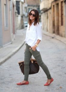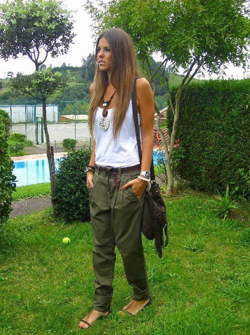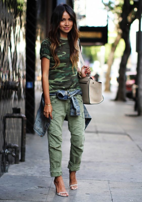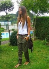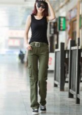 Thanks to a large selection of models, you can choose military-style pants for any type of figure. Girls with the figure of "triangle" or "apple" fit volumetric models with a low waist, and owners of the figure "pear" or "hourglass" should prefer a slim model without bulk elements.