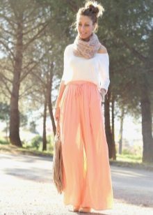 These are very wide trousers which fit a waist tightly, and further extend to a bottom with light folds. Outwardly, they are easily confused with a midi skirt, so they are often called skirt-pants. Usually sewn from light flowing fabric.
