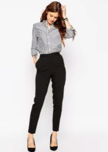 You are best suited straight, not too tight trousers with arrows. The length of the pants should reach the end of the heel, which will visually add to your height. You should also give preference to models with high waists, which are also designed to lengthen your legs.