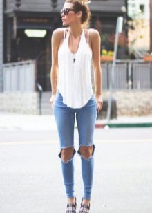 Of course, the characteristic cut suggests the presence of an ideal figure. However, girls with any imperfections are not obliged to deny themselves in wearing skinny. The main thing is to choose the style that suits you and choose the right combination for them. For example, if you have a poor waist, put on an oversize shirt or a sweater that will not fit the figure to the tight pants.