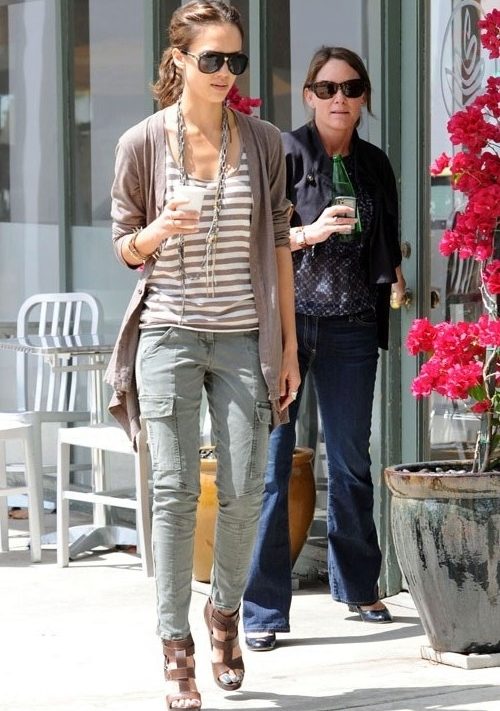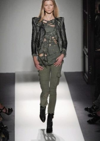 This pants free, slightly baggy cut with an unusual set of pockets. They are located not only in front and behind, but also on the sides. True, today you can find tight-fitting models in the wardrobe of modern fashionistas. The canonical cargo pants are sewn from dense natural camouflage fabrics - khaki, olive, sand, black.