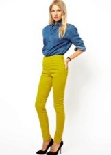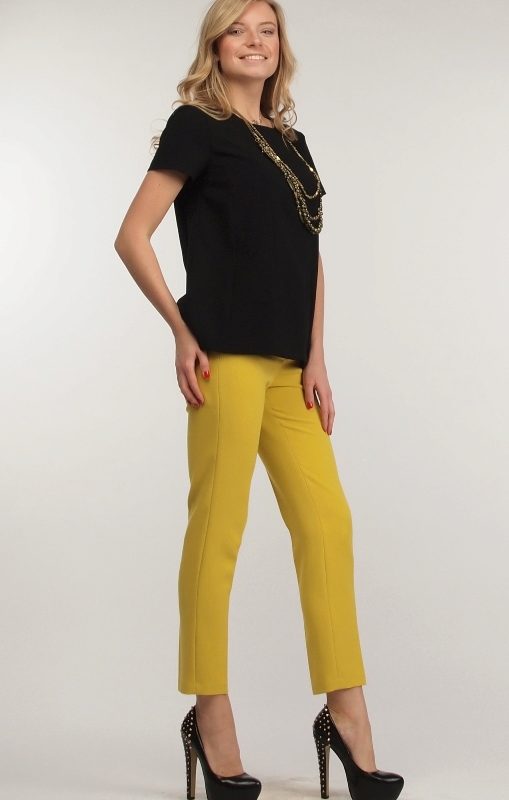 Stylish mustard-colored trousers with a high waist. This model is suitable for girls with a slim physique.