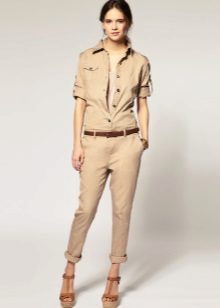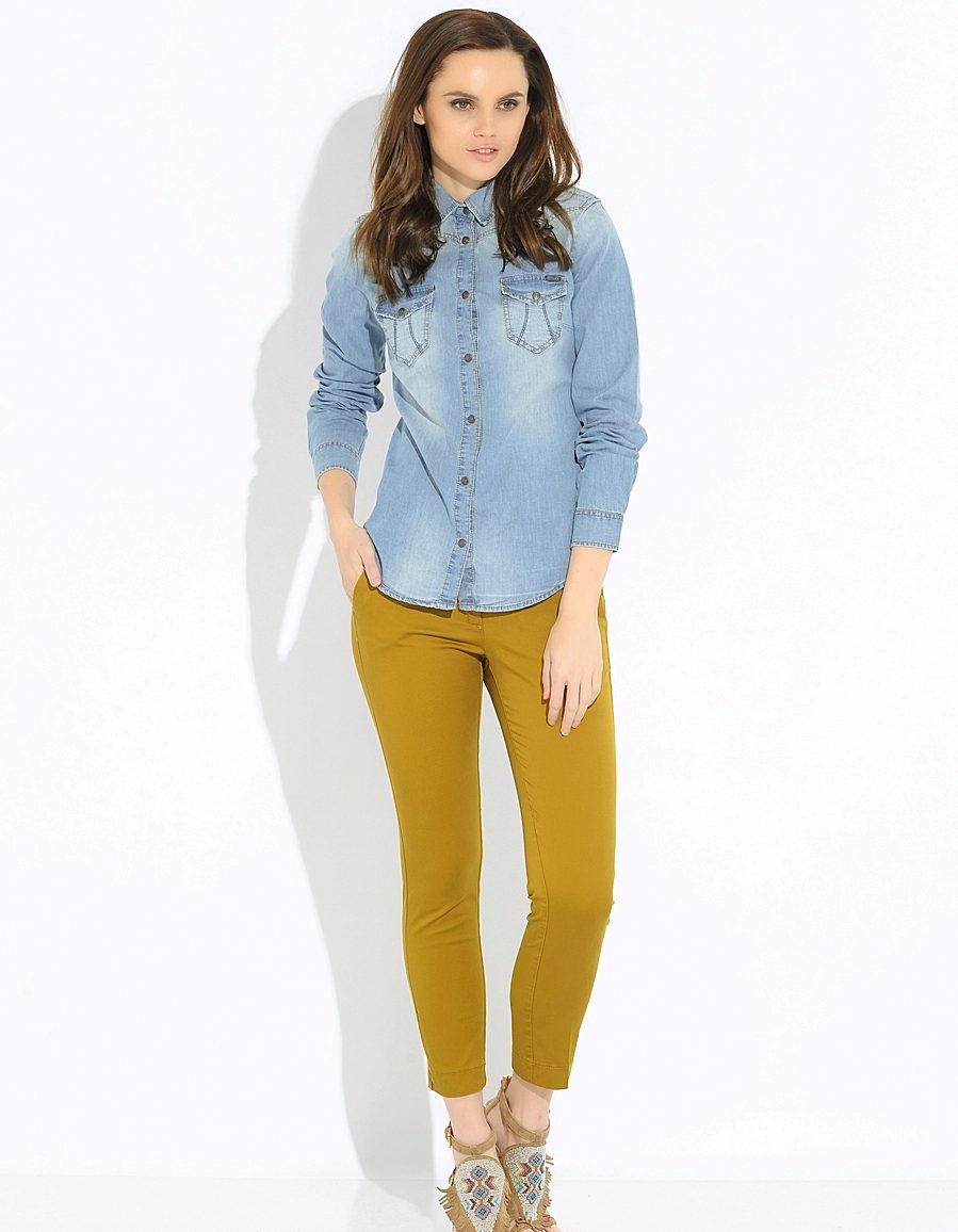 Another option - set - pants with a denim shirt. This image is similar to the European style. Shoes can be picked up black on a flat sole or on heels.