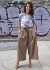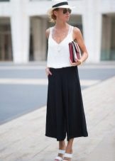 Culottes - a specific model, incredibly original and extravagant. They are wide pants with length just below the knee. Cotton culottes are ideal in hot weather, they are free and not stuffy. But not everyone is suitable, they will sit on tall girls perfectly.