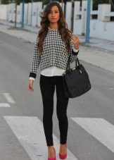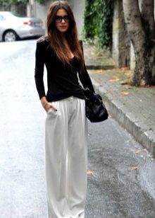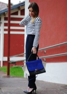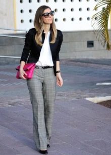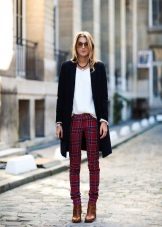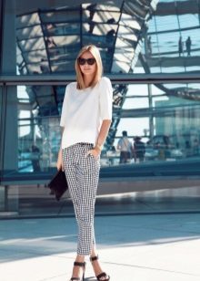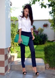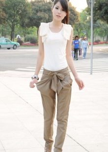 Chinosa. They look like pipes, but differ in style - they are not formal, they fit perfectly into the casual style. Their distinctive features: free top, narrowed and shortened bottom. Chinos can be combined with classic blouses and shirts, and sweatshirts, T-shirts. In the shoes, too, there are no restrictions.