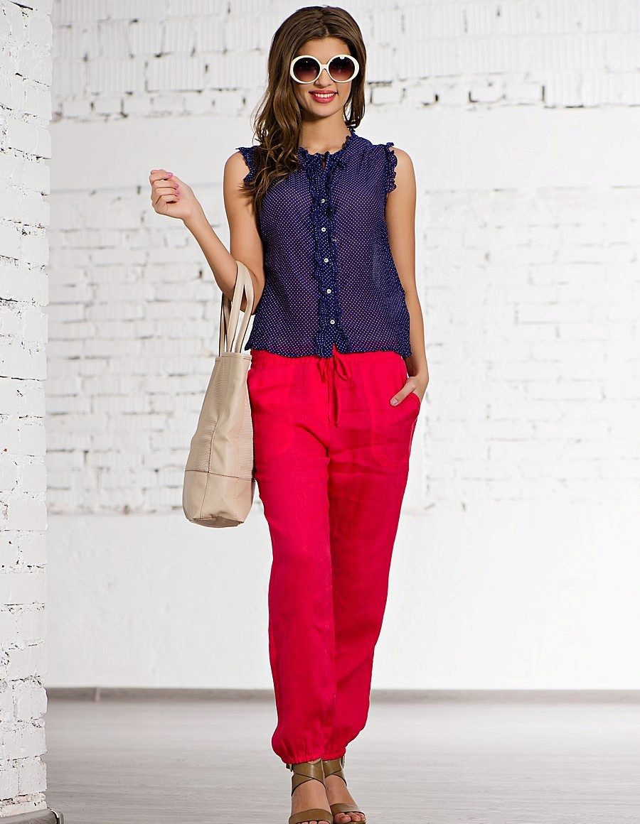 Cotton pants are a popular piece of clothing for women. They have three advantages: pleasant sensations, practicality, relevance. Natural fabrics are always in priority over synthetics, they are cool even in the hottest weather. A variety of corners, shades, models allows to create interesting images every day from cotton trousers.