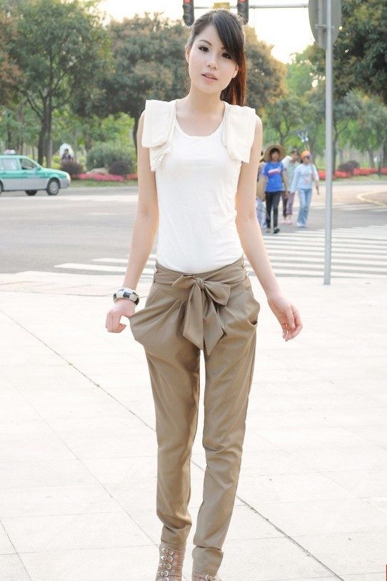 Design solutions with cotton trousers, which the fashion industry gives us every season, look elegant and concise. The secret of fashion designers is simple - it lies in the comfort of cotton fabric. The following photo compilation will show what huge opportunities for fantasy in the formation of fashionable bows provide cotton models.