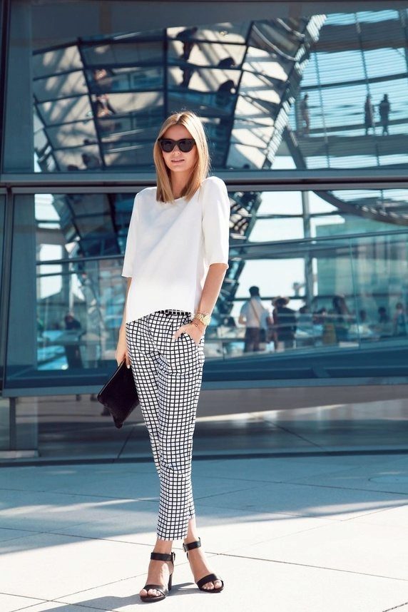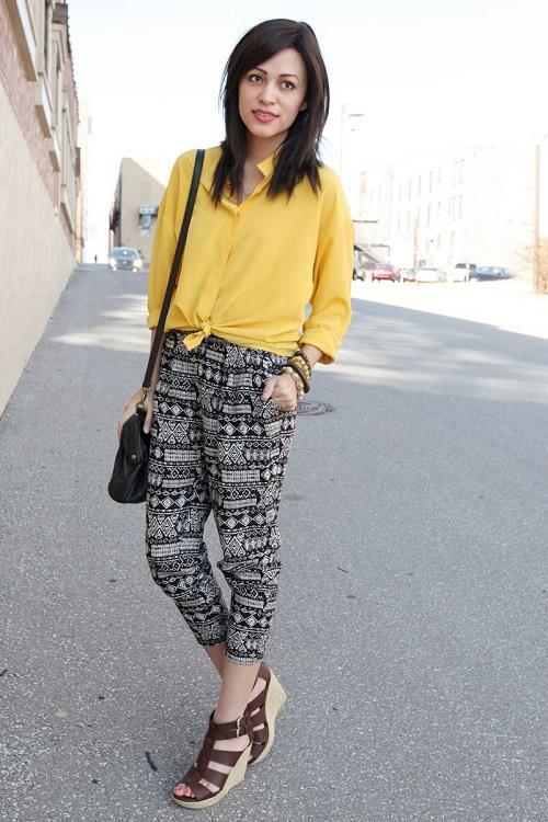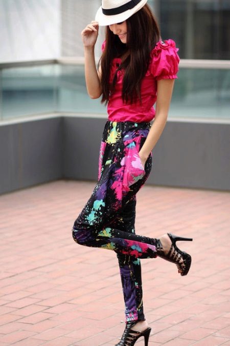 Less popular pants with prints - floral, animalistic, geometric. They are harder to combine with other clothes.But they look fashionable and extravagant.