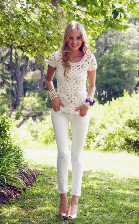 The most popular models of cotton trousers are tapered and straight with white or beige arrows. They are perfectly combined with blouses, tops, jackets and jackets, suitable for an office image.