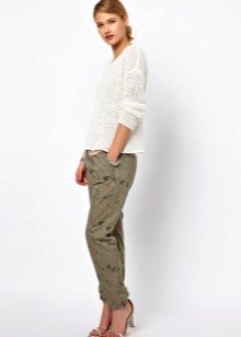 This model is opposed to the previous one. It is she who will suit the fair sex with absolutely any physique. This model looks more boldly and militantly, sometimes it is decorated with voluminous pockets, giving a greater resemblance to real camouflage pants. In fact, such a thing is very good to have in your wardrobe, it is great for traveling, walking, and most importantly, for any weather.