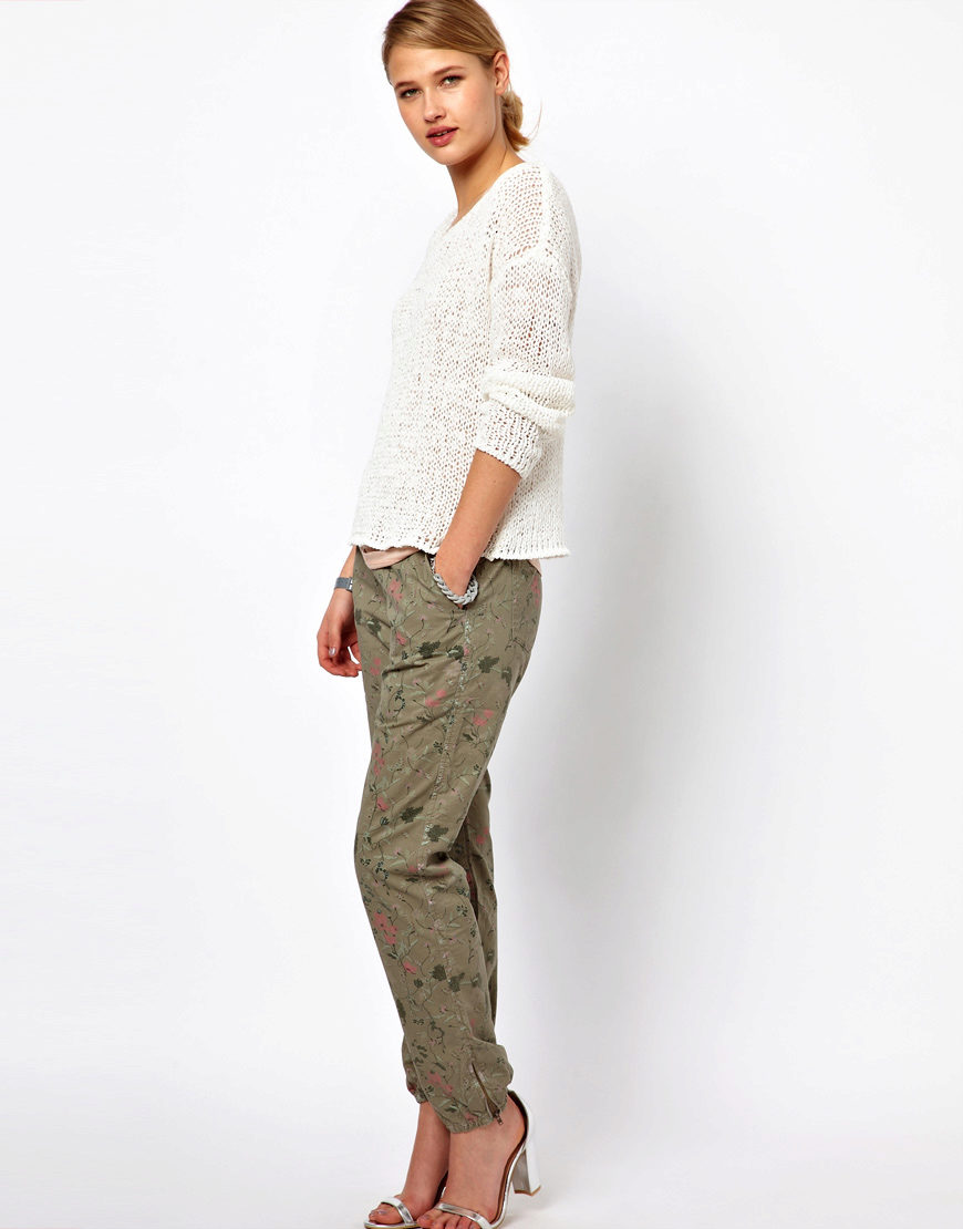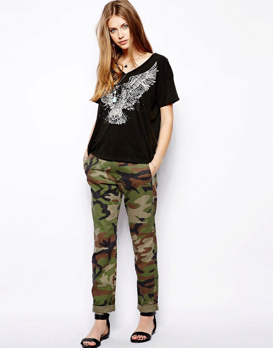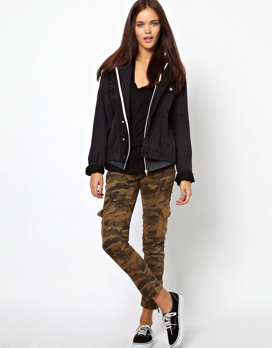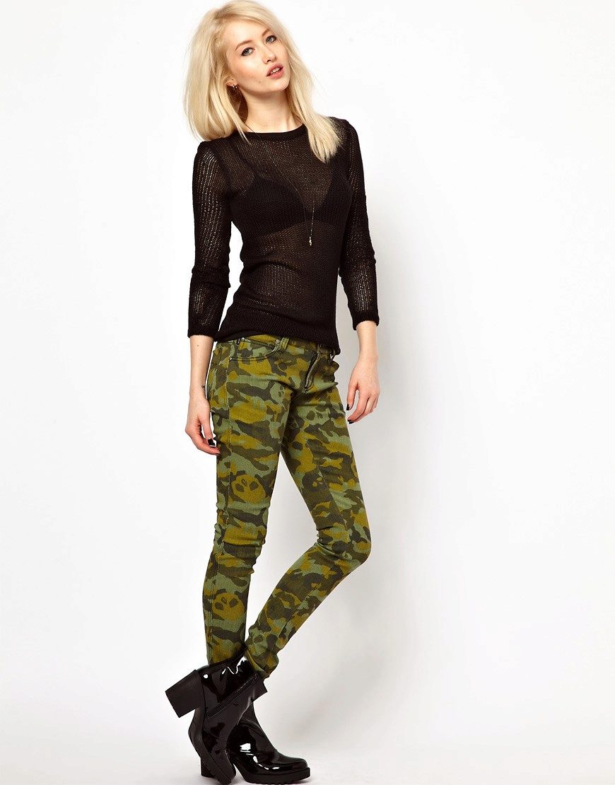 Modern designers offer women a huge selection in models and colors of camouflage pants. Torn jeans and pants with elastic at the bottom remain the most popular. To keep up with new trends, be sure to find the right model for yourself. It's easy to do, because almost all fashion houses offer several options that differ in style, fabric or color.