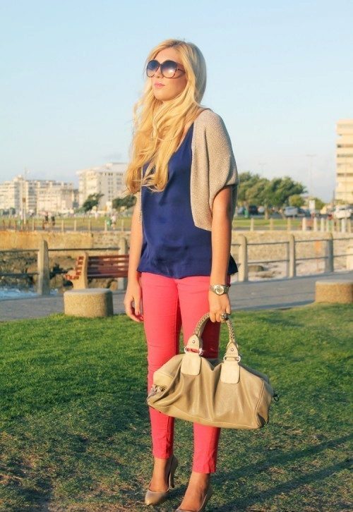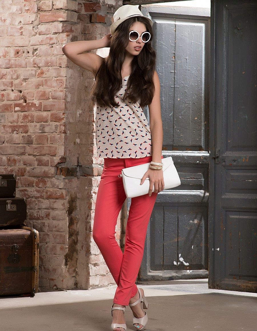 For several seasons, coral color is considered one of the most relevant, so let us focus on the main features of wearing pants of this color.