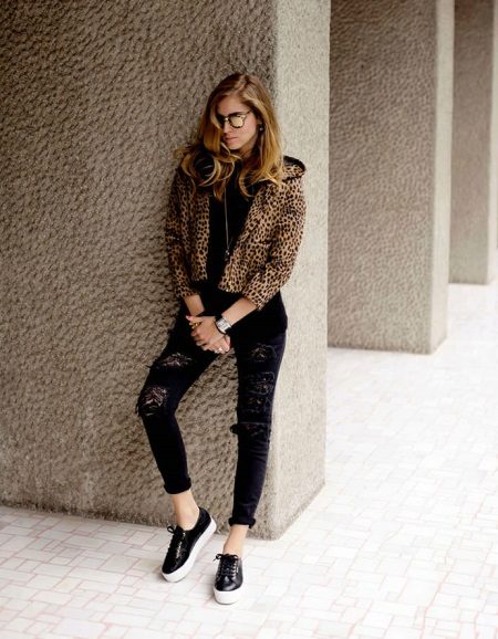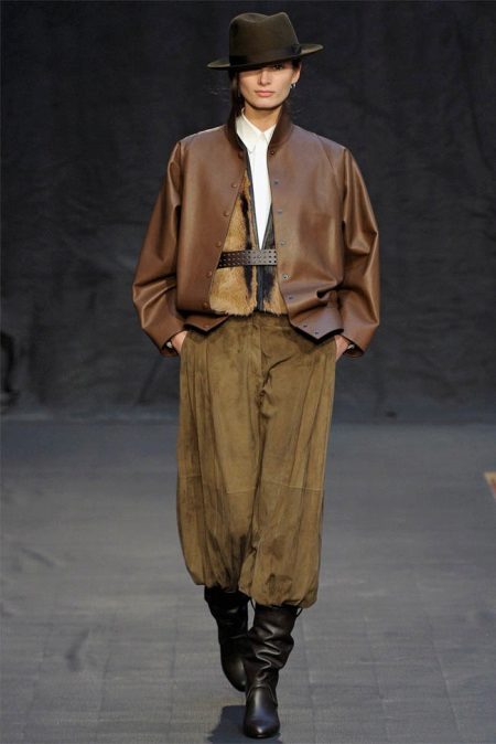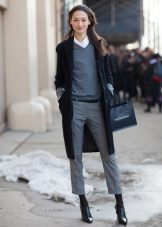 Women, who consider their ankles too voluminous, will be helped by a model of shortened trousers with coarse trouser legs, ending with lapels. This combination will make the lower leg visually much more fragile and thin.