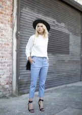 Denim shortened women's pants - a versatile thing for both business and for an informal atmosphere.