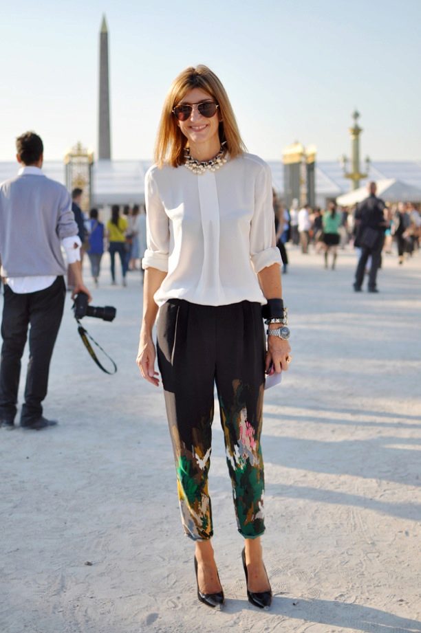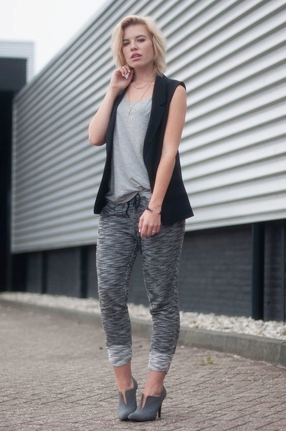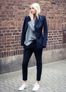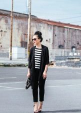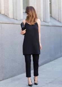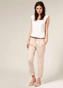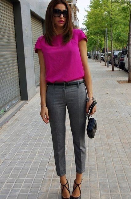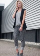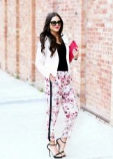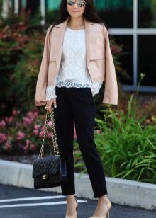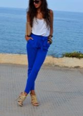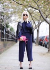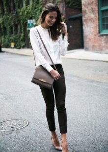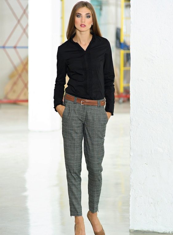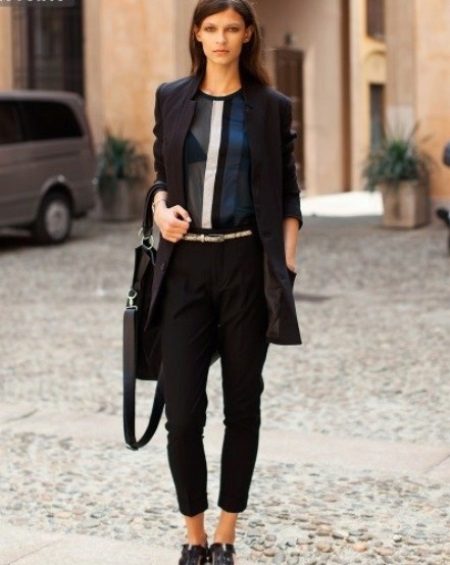 These pants are perfectly combined with shirts (both with long and with short sleeves), tops, blouses, jackets. The upper part of the ensemble may have a basque or be multi-layered. In the latter case, one of these layers can be a cardigan.