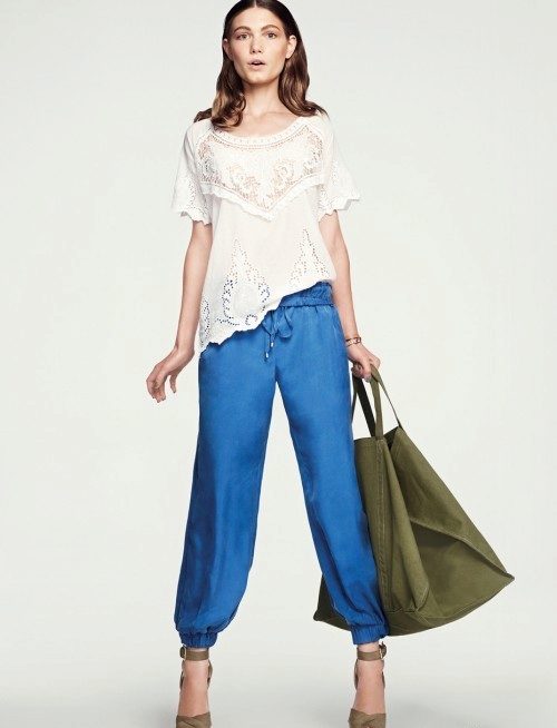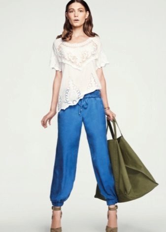 Pumpy. Everyone knows what bloomers look like. A pumping - their shortened variety. This model is the work of the suffragists of the end of the last century. The length of these pants comes to the middle of the leg, the width is free. The bottom of the leg is going to cuff or elastic.