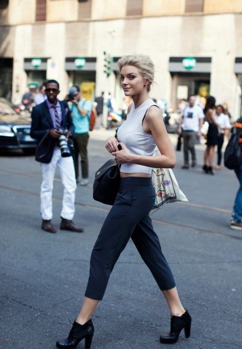 Of course, tall and slender girls were lucky. They can wear absolutely any model of shortened trousers without any complaints. For girls with minor defects in shape, you can try shortened trousers made of dense fabrics of dark colors to visually lengthen the legs and give them slimness.