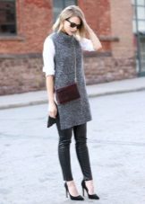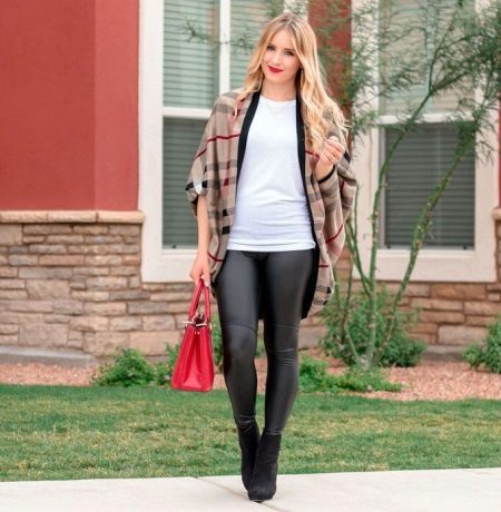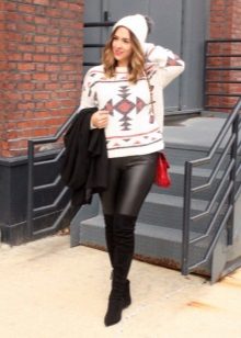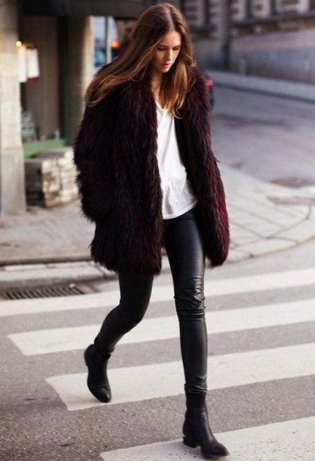 Leggings are now worn only with clothes that chastely covers thighs and does not tightly fit the upper part of the body. Ideal options - long sweaters from knitwear, classic or knitted jackets, various jackets, fur coats. In the summer, chiffon tunics, T-shirts and T-shirts will do.