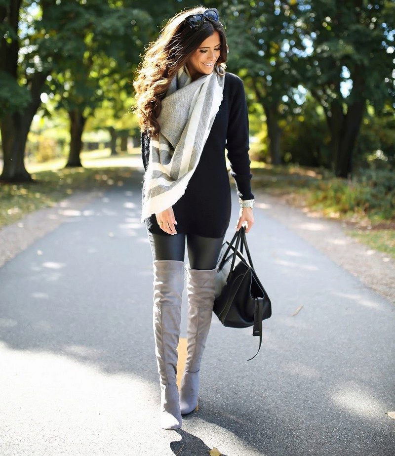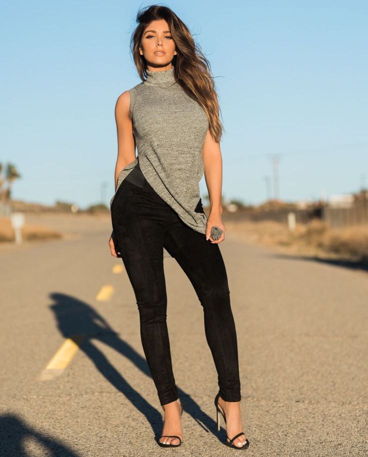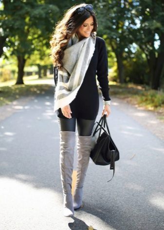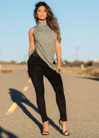 Shoes can be different: boots with high or low heels, ankle boots, sandals, rough shoes, elegant sandals, classic pumps. Just remember that suede leggings should choose shoes from smooth leather.