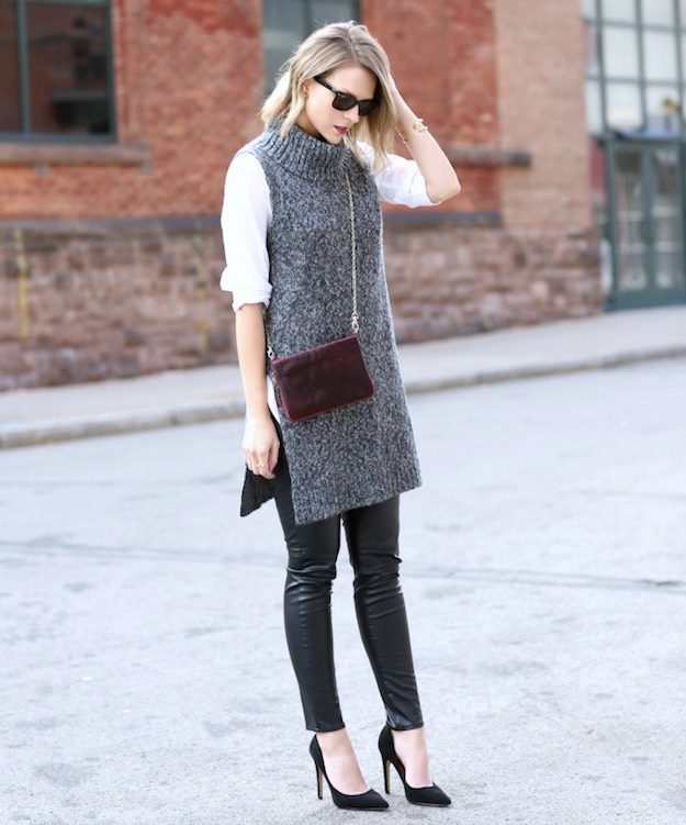 Leggings that have replaced leather pants are now at the peak of popularity. Designers offer to wear them on weekdays and on holidays. They are appropriate in the classroom at the university, and in the office, and at a party.