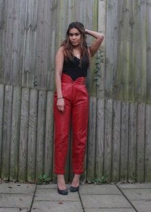 Designers each year offer many different styles of red pants for the summer. In hot weather pants, the quality of the fabric is important - the models are mostly made of chiffon, flax and cotton. At the peak of fashion, there are ankle-length trousers, or they are called 7/8, and free-cut banana pants.